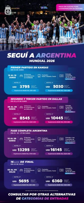 Incluye Equipaje en Bodega ida y vuelta.-Precios expresados en Pesos Argentinos.- Tarifas válidas para argentinos o residentes.- Consultar tarifas para extranjeros.